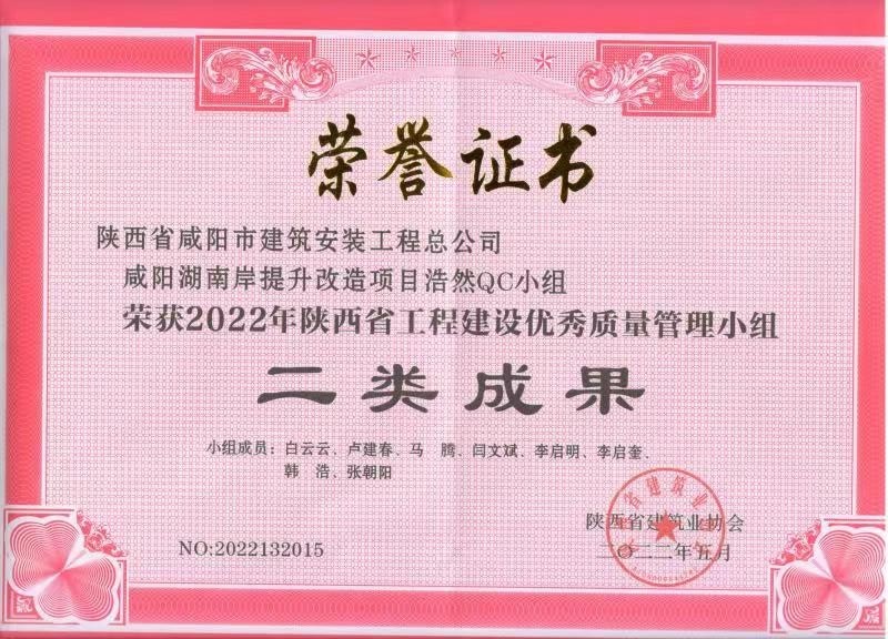 上一篇:2024年度咸陽市建設(shè)工程“秦陽杯”榮譽證書